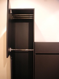 Kubus mit Schublade für Jacke, Hemd und Anzug: Dieser Kubus ist 60 cm tief, 120 cm hoch und hat eine 20 cm hohe Schublade über der Kleiderstange. Hemden, Jacken und Anzüge benötigen nicht mehr als 100 cm Innenmaß zum Aufhängen.