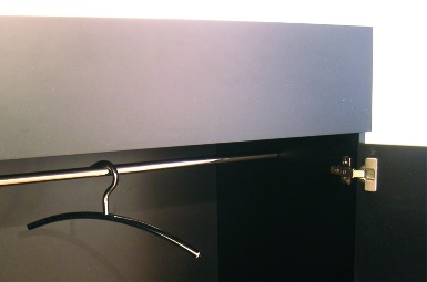 Auch der Hochschrank für Erwachsene ist nach diesem System konzipiert. Die Kleiderstangen können je nach Bedarf und Länge der Kleidungsstücke einfach oder mehrfach übereinandergestellt werden.